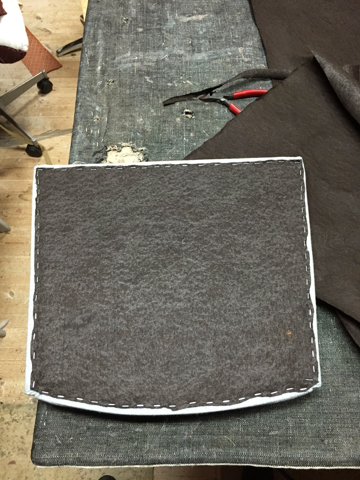 Sedan fick vi in 8 sitsar som jag började med direkt. Dom var också rätt hemmagjorda. Olika träplattor och lite olika stoppning och lite olika tjocka.